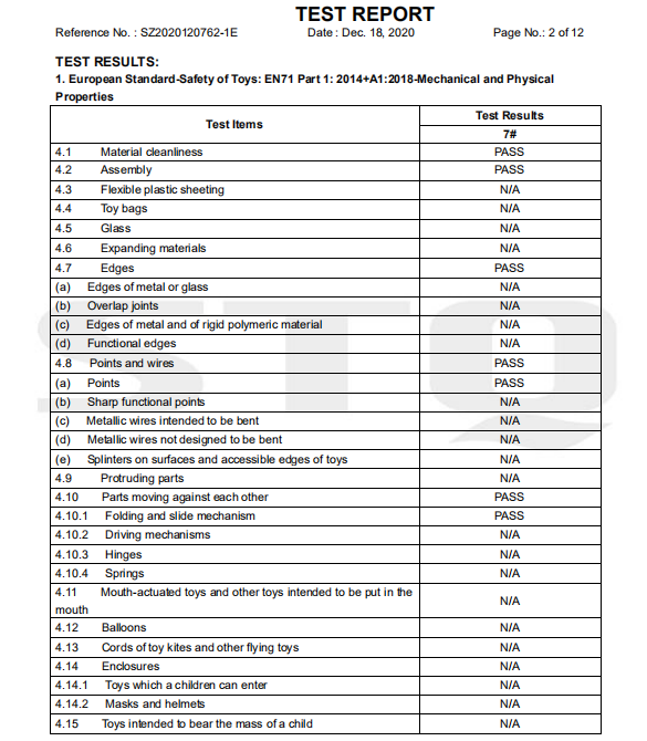 Your Location:Home > Toy stationery testingEN 71-1:2014+A1:2018 Mechanical and Physical Properties of Toys
