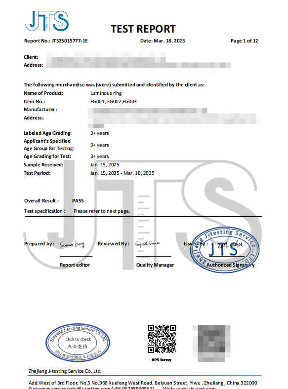 •Chemical Tests: Eight soluble heavy metals (lead, cadmium, mercury, etc.), phthalates, total lead content.